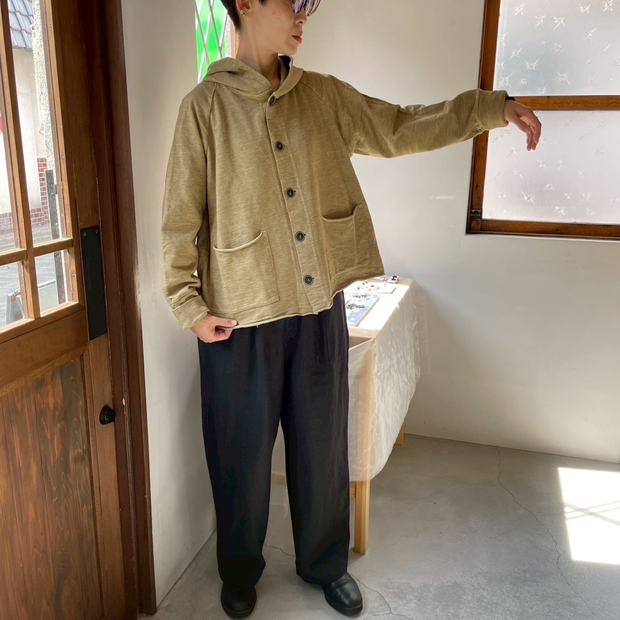 ヴィンテージの雰囲気を出したスラブコットンがこなれた雰囲気と独特の色味がラフな雰囲気とこなれた感じを演出。フードホールの配色も赤がきいていてかわいいですね。