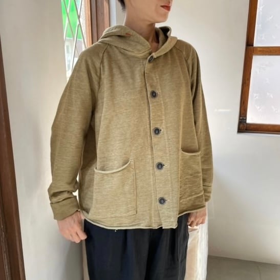 さらっとしたスラブの質感が特徴の生地を使ったパーカー。