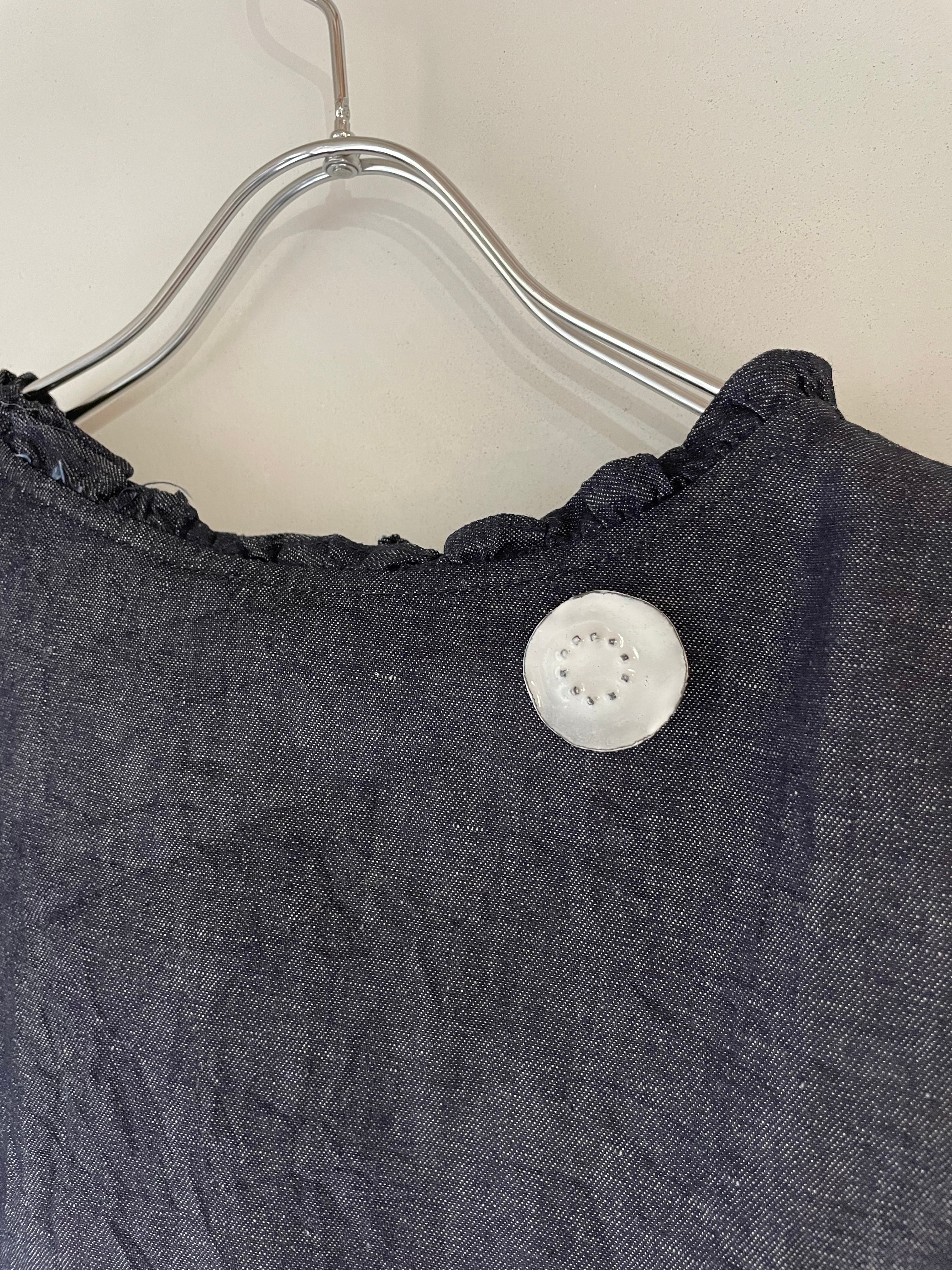 纏う金属 鉄と白釉ブローチ(〇)SS mato-10