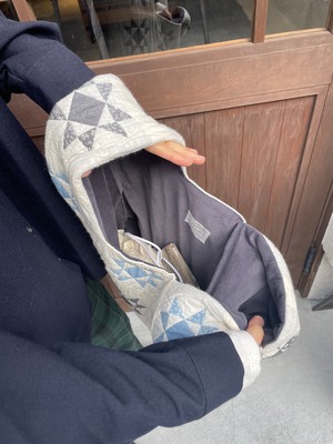 二本の持ち手の長さが同じなので、持ち手を通してもつノットバッグとしての使い方と
