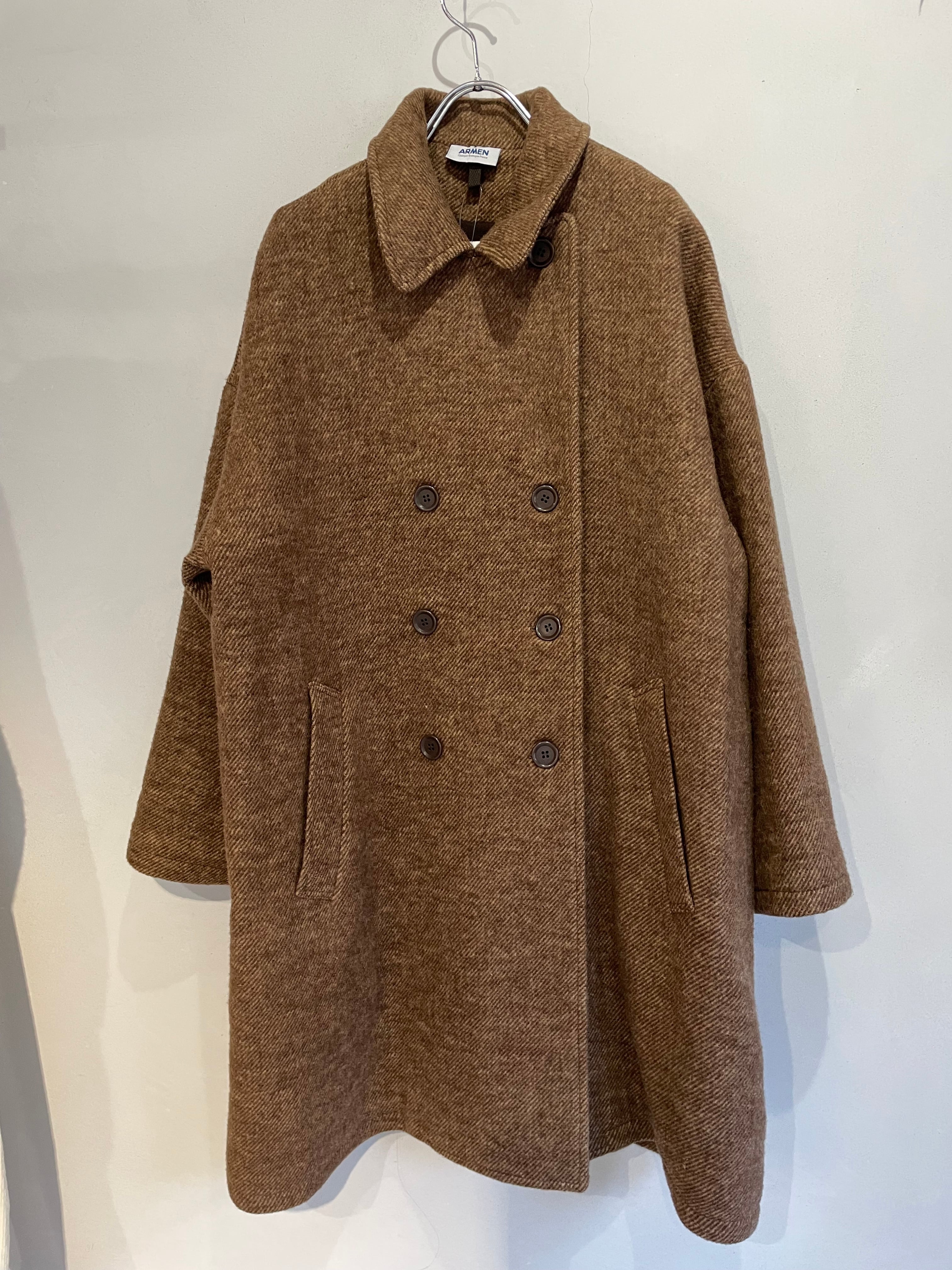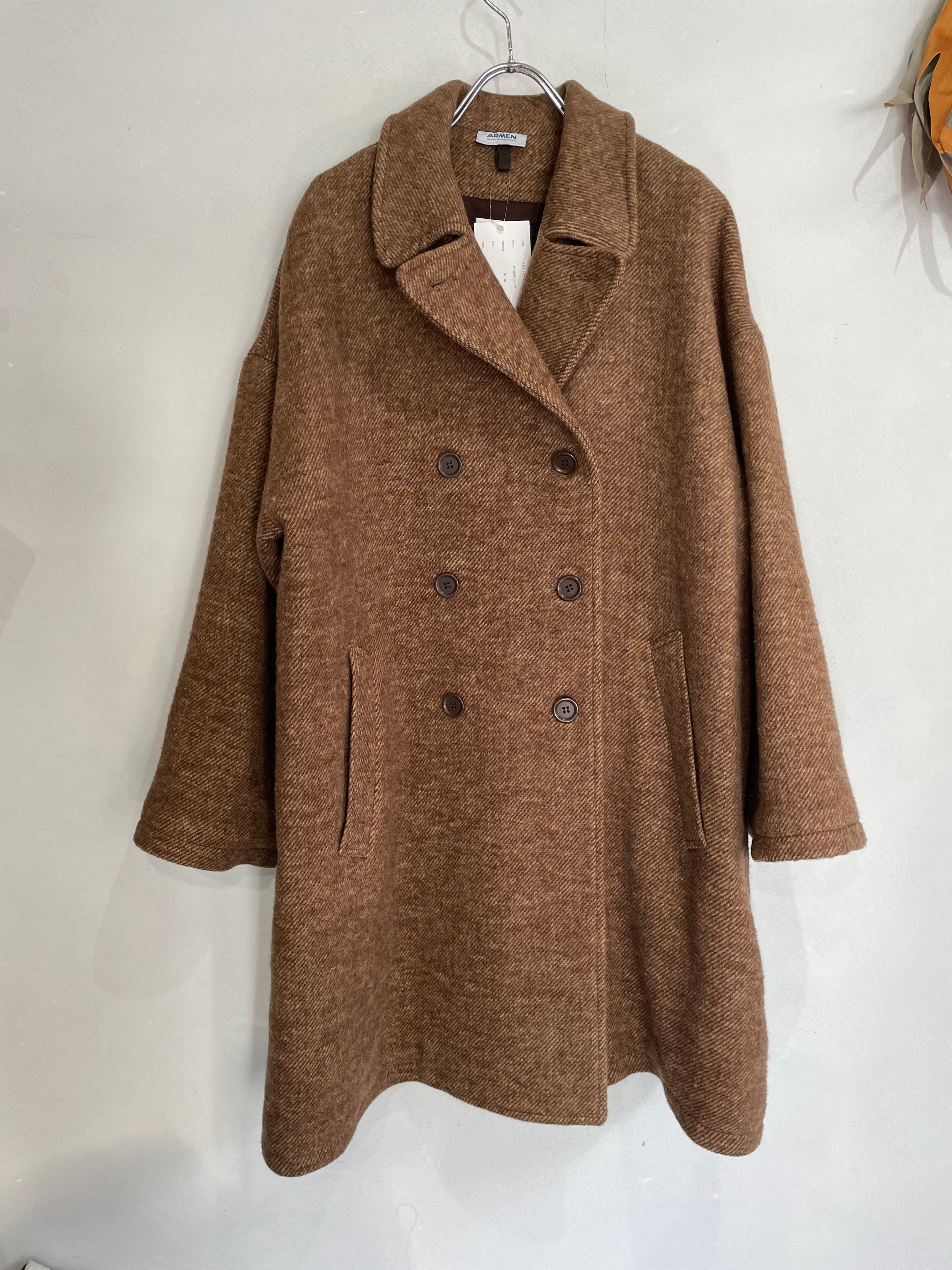 ARMEN WOOL PLAIN OVERSIZED PEA COAT WITH LINING